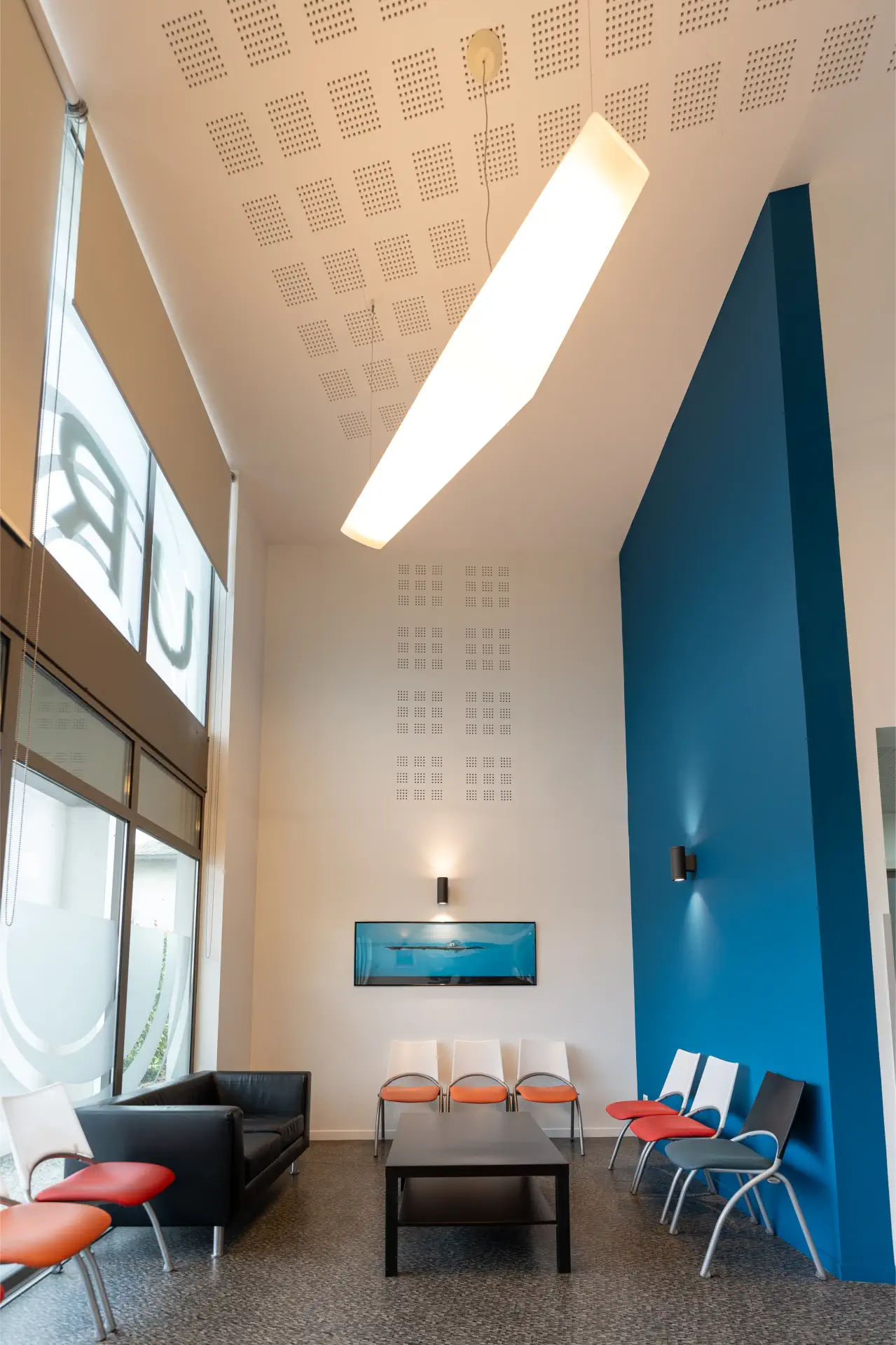 L’ambiance recherchée conjugue rigueur médicale, professionnalisme et sensation de calme. Les matériaux, les couleurs et le traitement acoustique ont été choisis pour réduire le stress inhérent au parcours de soin, tout en affirmant une image contemporaine et qualitative de l’établissement.