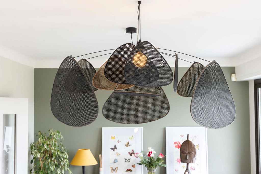 L’univers décoratif mêle subtilement influences ethniques et lignes contemporaines, dans un équilibre maîtrisé. La mise en peinture a joué un rôle clé : les teintes trop marquées ont laissé place à une palette claire et nuancée, capable d’évoluer au fil de la lumière et des heures de la journée.