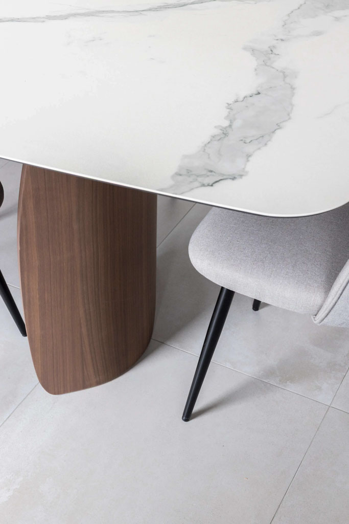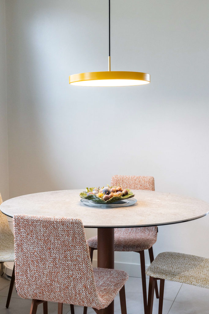 Il s’agissait également de composer avec une architecture marquée, typique des années 70, sans la dénaturer : volumes généreux, jeux de niveaux, cheminée sculpturale aux lignes courbes, éléments identitaires forts qu’il fallait intégrer pleinement au nouveau récit spatial.