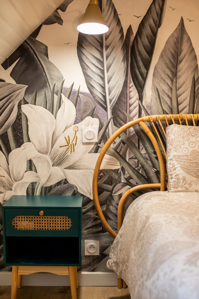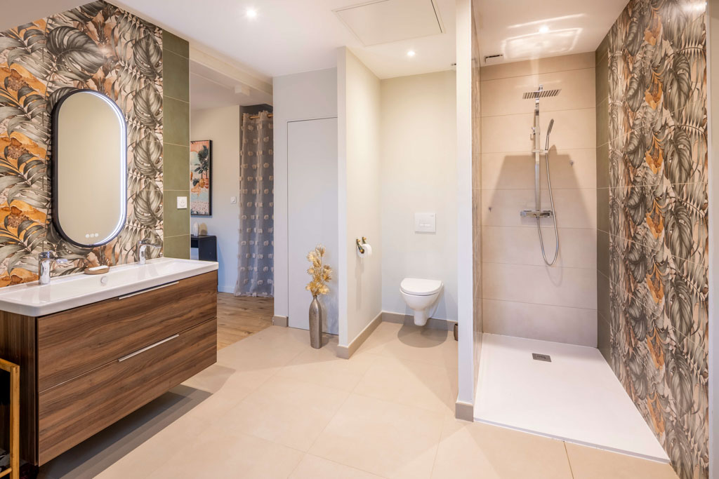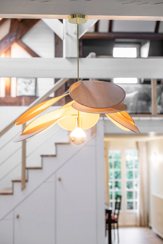 Les matériaux et les teintes ont été choisis pour créer une atmosphère douce et enveloppante, où le bois et les textures naturelles dialoguent avec la charpente existante. Chaque espace a été pensé pour conjuguer fonctionnalité, confort et émotion.