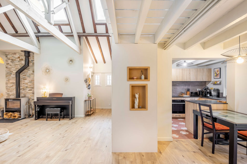 La Maison Philippon a retrouvé une nouvelle respiration. Les volumes sont lisibles, lumineux et chaleureux, tout en conservant le caractère de la bâtisse d’origine.